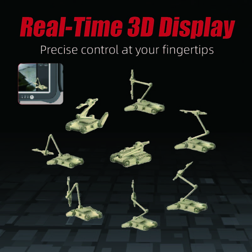 Aangezien bomverwijderende robots vaak buiten de gezichtslijn opereren tijdens missies, is realtime informatie over de hoeken en ruimtelijke posities van de gewrichten van de robot cruciaal voor de bedieners. The REOD450 uses high-speed links and advanced computer technology to not only achieve real-time feedback of the robot's status information but also to employ leading 3D virtual display technology for remote real-time display of the robot's 3D statusDit zorgt ervoor dat de robot zich "bij de hand" voelt, zelfs als hij "ver weg" is, waardoor een intuïtievere bediening mogelijk is.